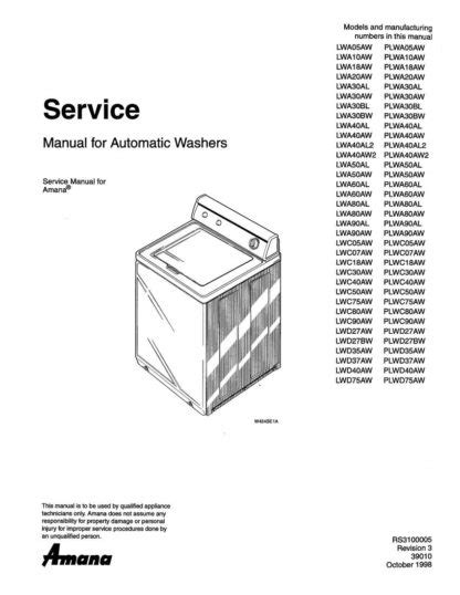 Read Amana Washing Machine Repair Manual Paperback ManyBooks